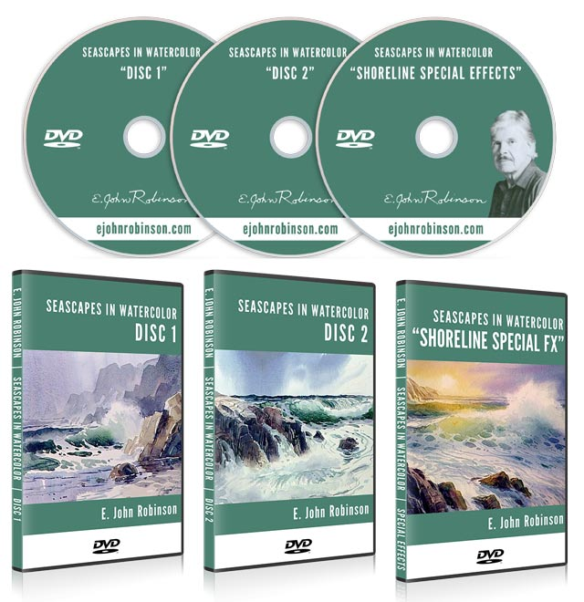 Learn how to paint seascapes in watercolor with E. John Robinson's three-part digital download set. In full color, this series is intended for both beginners and advanced watercolor artists alike.